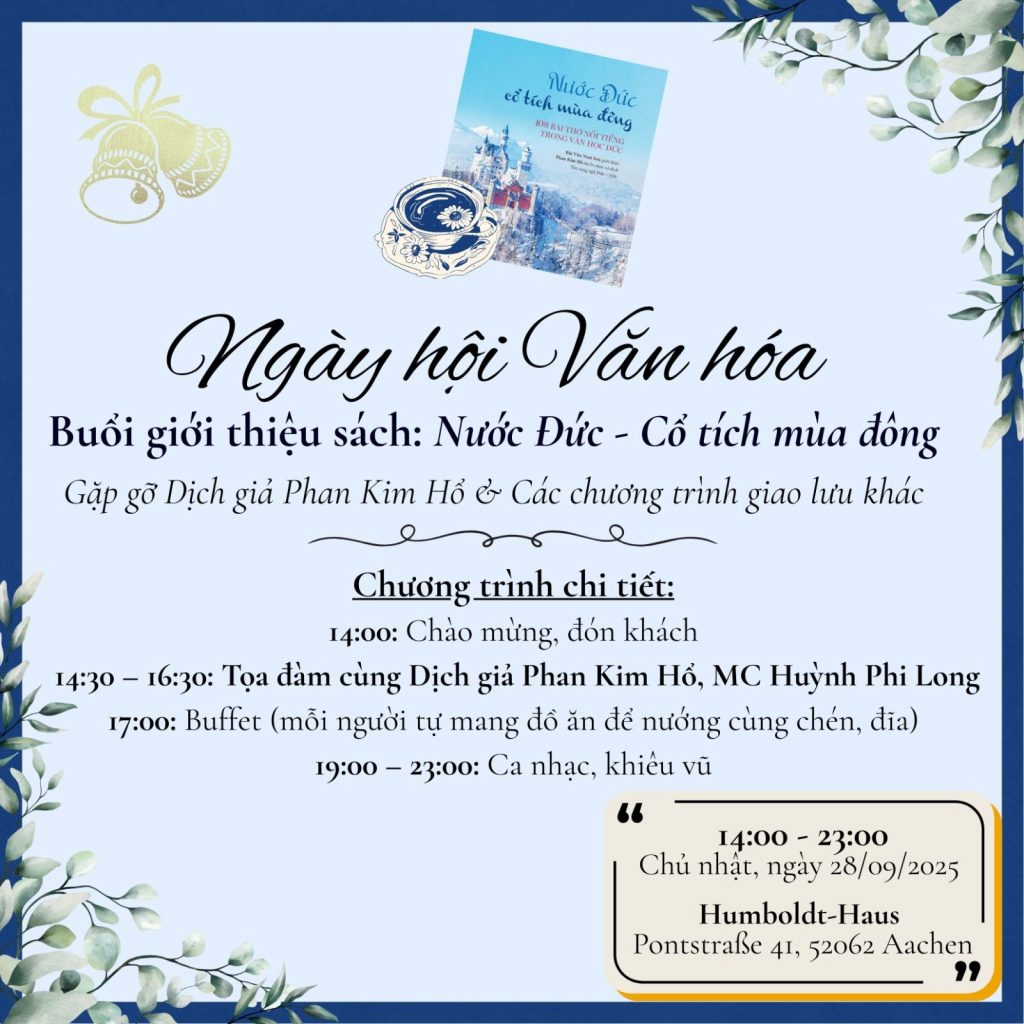Aktuelles Buổi giới thiệu sách: Nước Đức – Cổ tích mùa đông Updated 27.09.2025 Gặp gỡ Dịch giả Phan Kim Hổ và các chương trình giao lưu khác.
